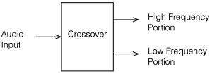 For example, possibly the simplest type of crossover will accept an audio signal at its input, and divide it into the high frequency and the low frequency components, and output those two signals separately. In this simple case, the filtering would be done with